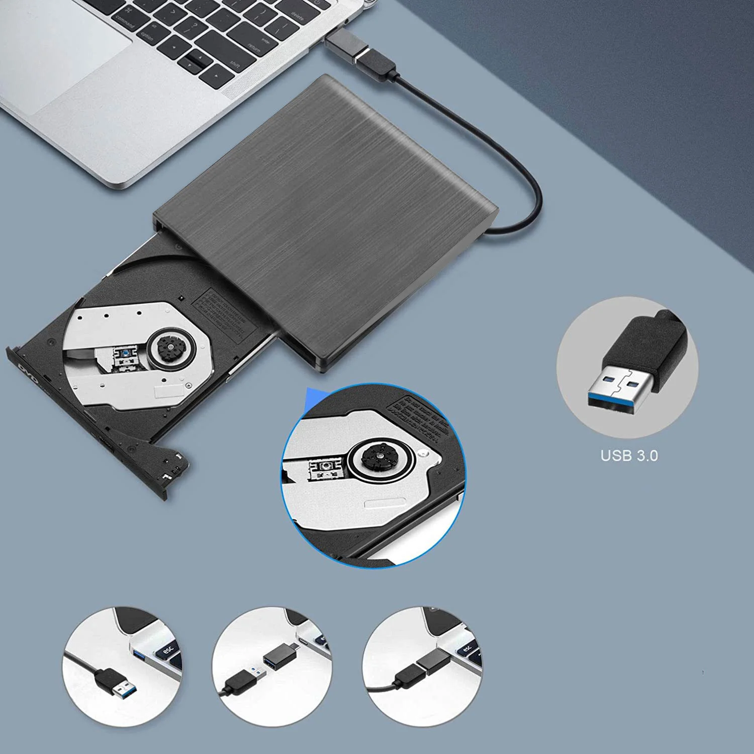 Comprar Unidad grabadora de DVD externa delgada RW CD VCD grabador + reproductor lector para ordenador portátil PC Notebook, USB 3,0/2,0 tipo c 3,1