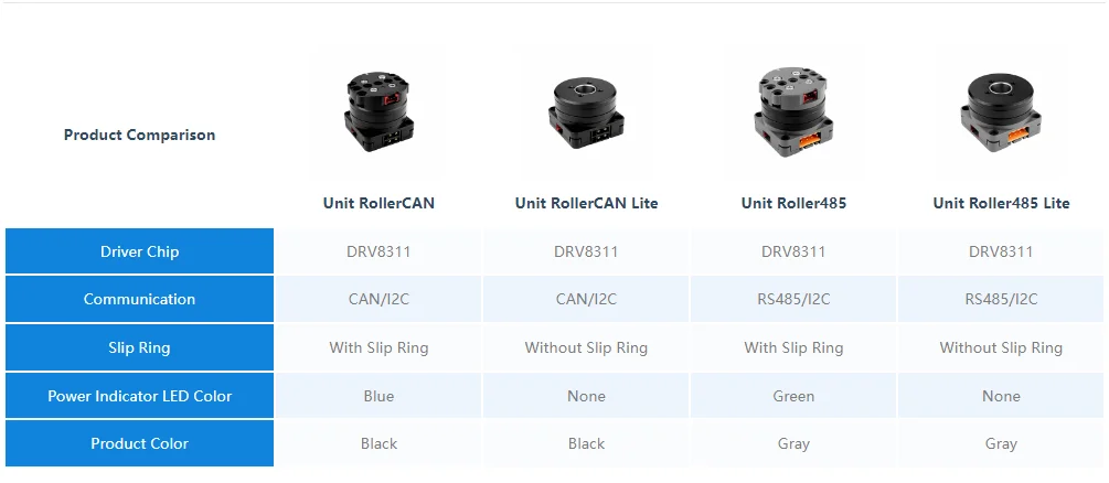RollerCAN Lite Unit es un kit de control de movimiento de motor de CC sin escobillas con múltiples funciones de control integradas, diseñado para un control de movimiento eficiente.Admite entrada de alimentación de 6-16 V CC (a través de la interfaz CAN) o entrada de 5 V (a través de la interfaz Grove) y puede ajustar automáticamente el factor de potencia para garantizar un rendimiento óptimo.Cuenta con un sistema de accionamiento de circuito cerrado FOC incorporado, que utiliza un motor sin escobillas de 3504 200 KV.La corriente máxima de fase de funcionamiento continuo es de 0,5 A sin enfriamiento forzado y 1 A para corta duración.El controlador utiliza un codificador magnético para retroalimentación y admite control de triple bucle de corriente, velocidad y posición, lo que garantiza un control preciso.
