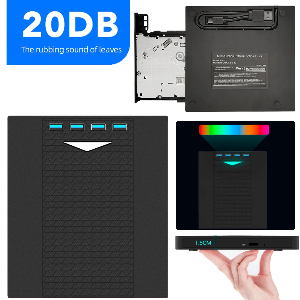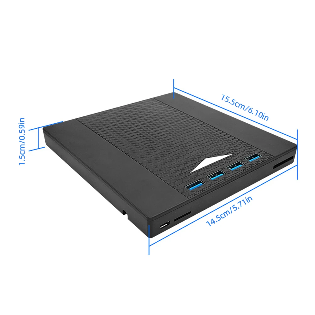 5. Puertos de expansión:La Unidad óptica externa también proporciona múltiples puertos de expansión, incluidas ranuras para tarjetas SD, ranuras para tarjetas TF y cuatro puertos USB, lo que le permite conectar y transferir fácilmente otros dispositivos y medios de almacenamiento.