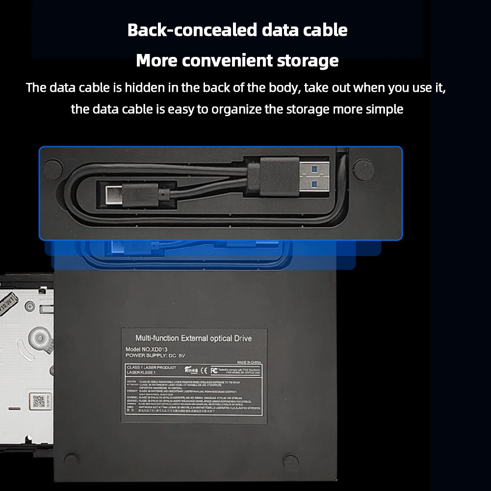 2. Múltiples interfaces de datos:Con soporte para interfaces de datos USB 3,0 y tipo C, la unidad de DVD USB 3,0 tipo C proporciona una transmisión de datos rápida y estable y es compatible con varios ordenadores de escritorio y portátiles.