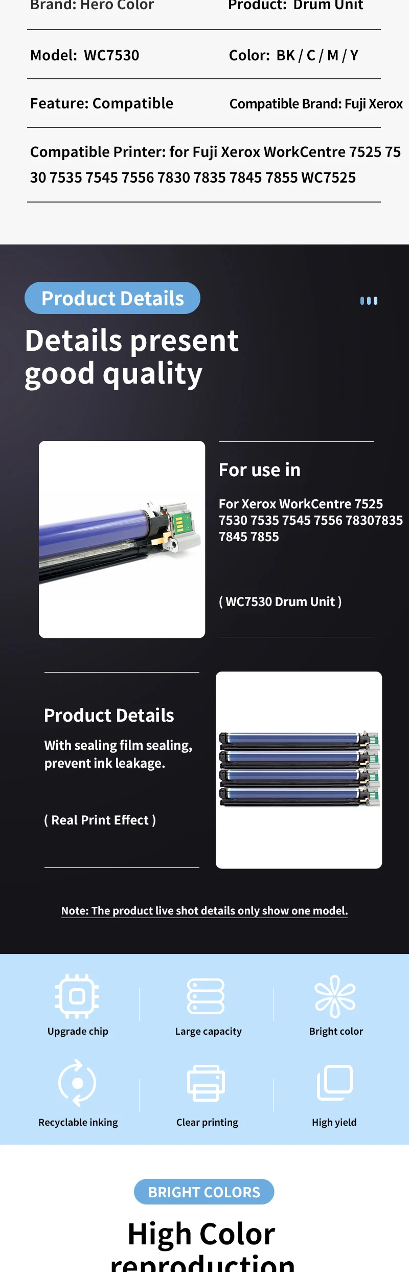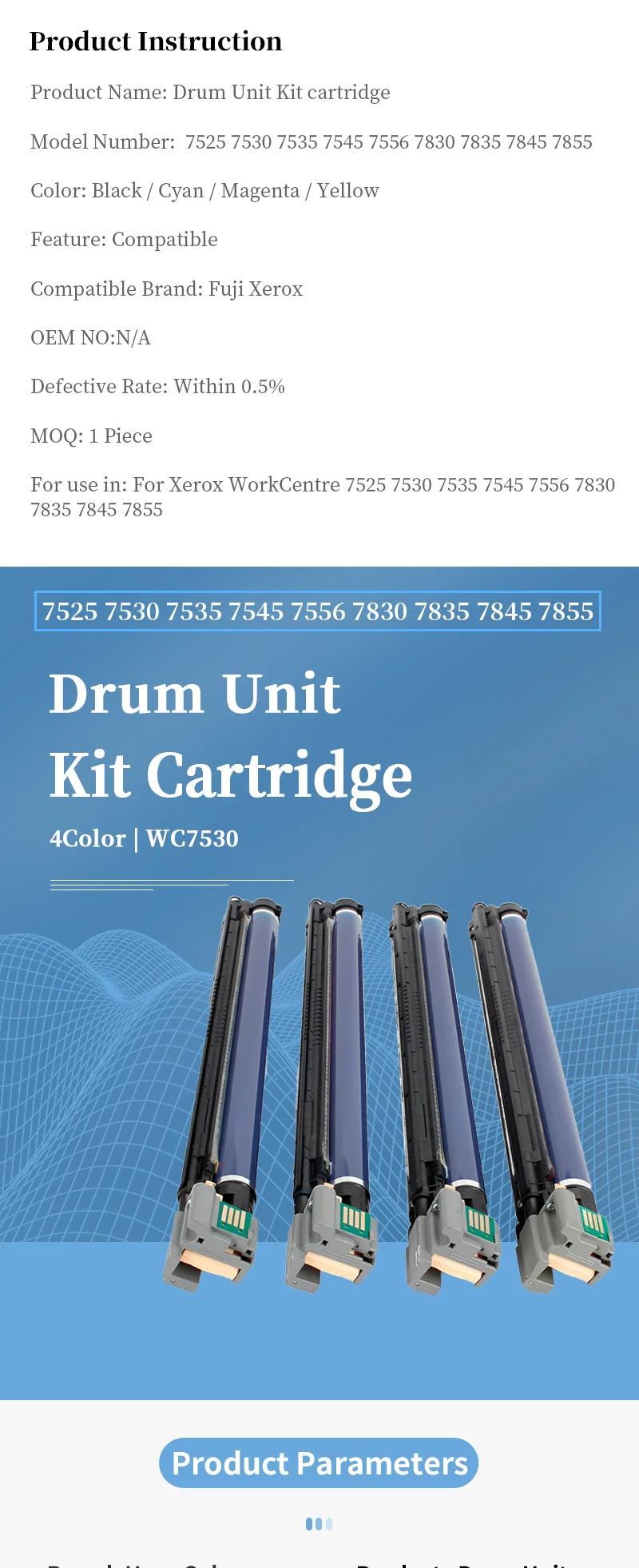 Comprar Unidad de tambor WC7530 de 4 colores para Fuji Xerox workcenter, Kit de cartucho, 7525, 7530, 7535, 7545, 7556, 7830, 7835, 7845, WC7525, WC7535