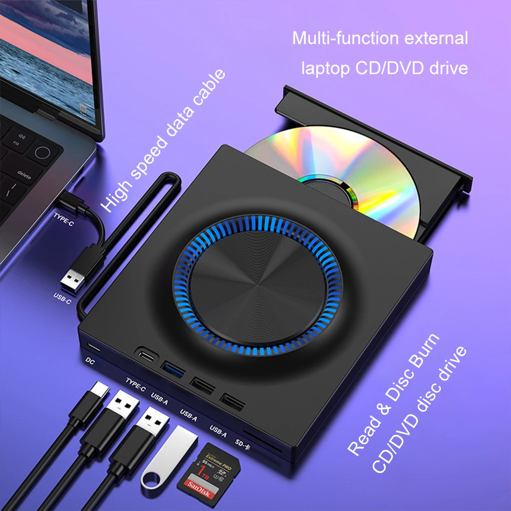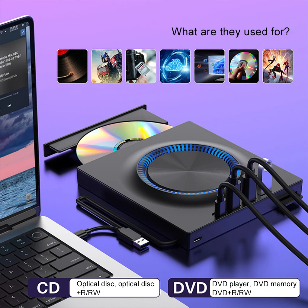 Comprar Unidad USB USB C externa de CD/DVD RW, grabadora de lectura, reproductor de DVD portátil, unidades ópticas para ordenador portátil, Windows 11, 10, sistema operativo Linux y Mac