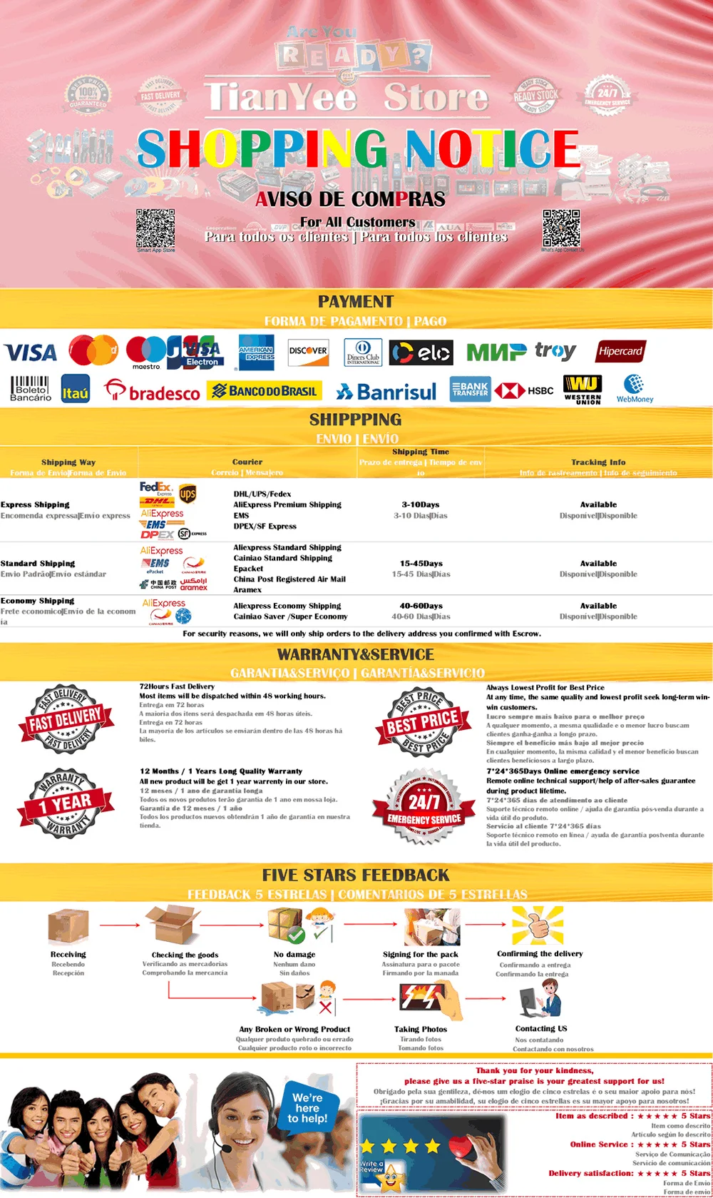 Importante para los compradores, antes de su pedido, visite y lea claramente nuestro acuerdo. Basándonos en su orden de compra final, creemos que ha leído y aceptado claramente los siguientes requisitos que presentamos, y puede cumplir con sus compromisos según lo requerido por el contrato.