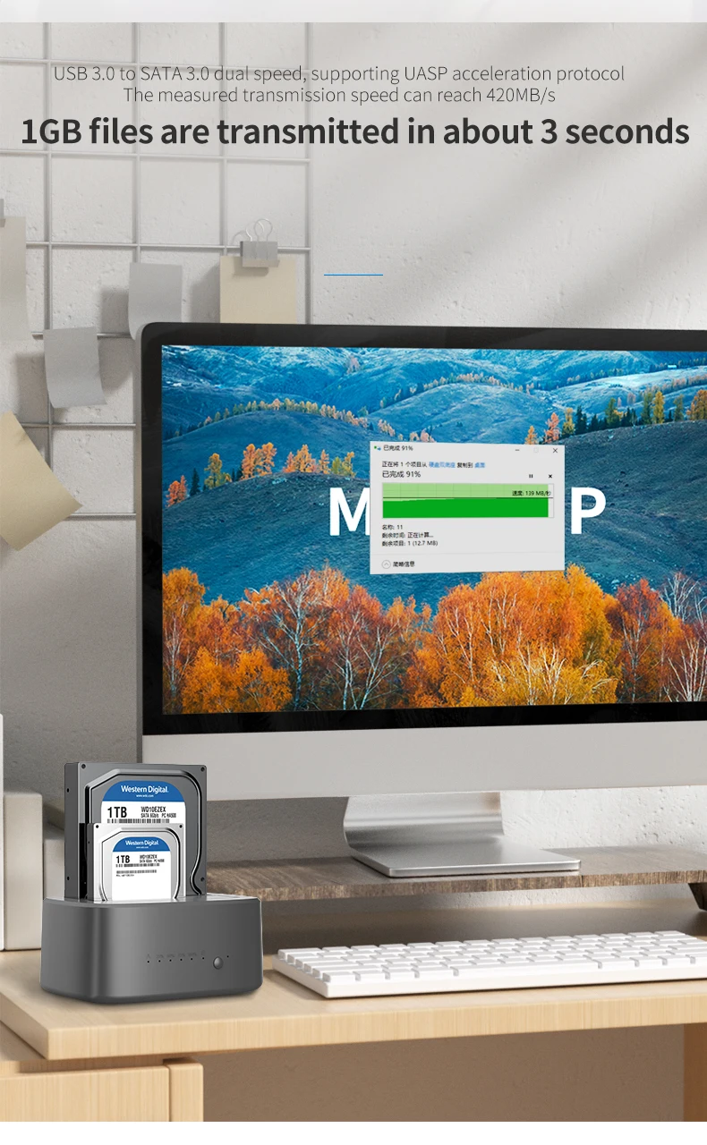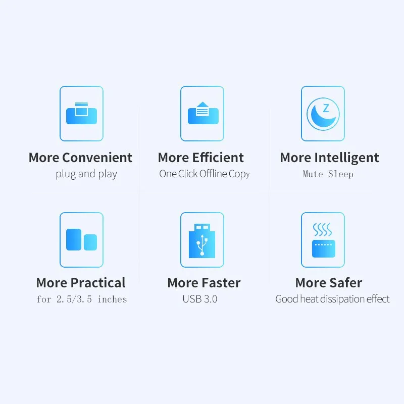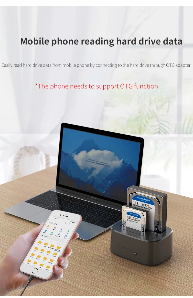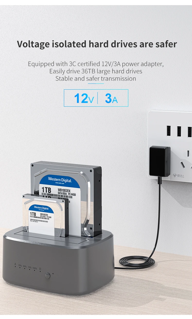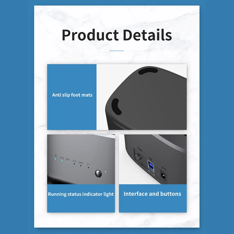 Esta estación de acoplamiento compatible con 2,5 pulgadas o 3,5 pulgadas HDD/SSD de hasta 16TB por Bahía, proporciona una forma más conveniente de transmitir datos entre su disco duro y la computadora a través de un puerto USB disponible.
