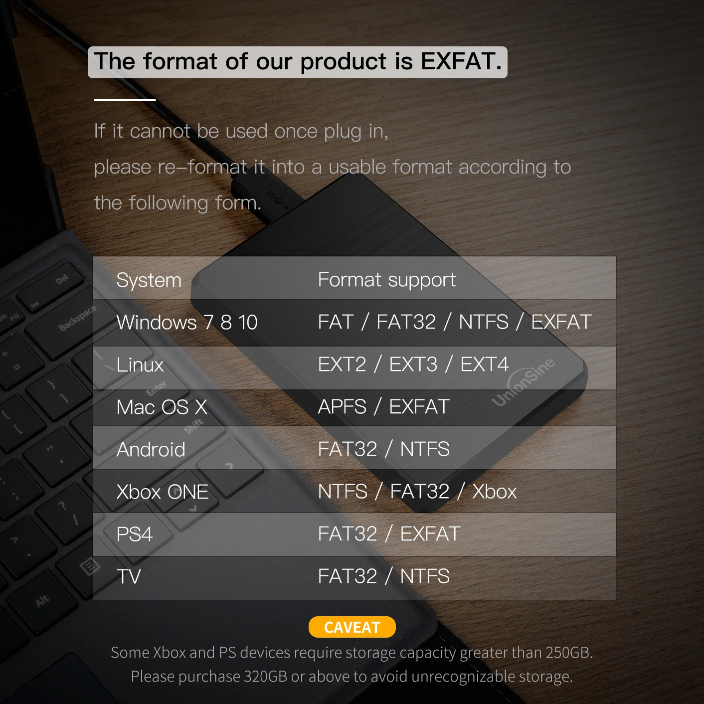 UnionSine-HD2513 disco duro portátil proporciona almacenamiento adicional para su colección cada vez mayor de archivos. Se confía en almacenar las cantidades masivas de fotos, videos y música que ama.