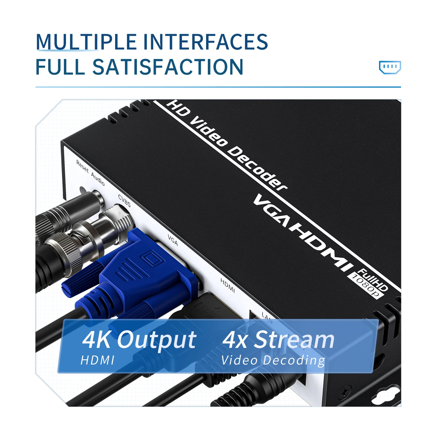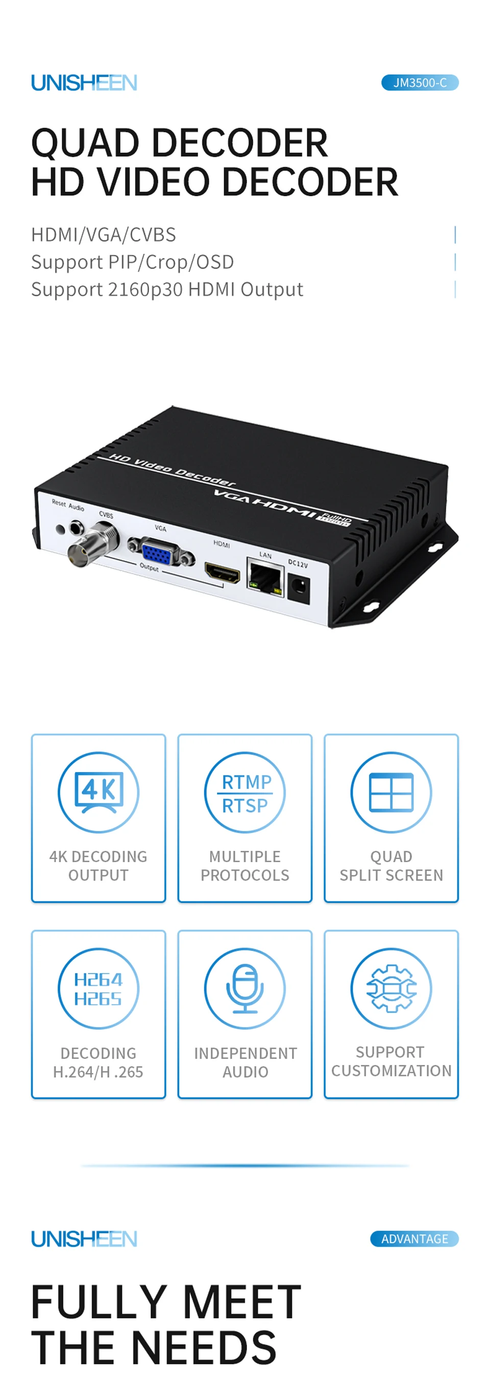 Comprar UNISHEEN-decodificador de vídeo 4K UHD H.265 H.264 RTSP RTMP SRT UDP IP a HDMI VGA