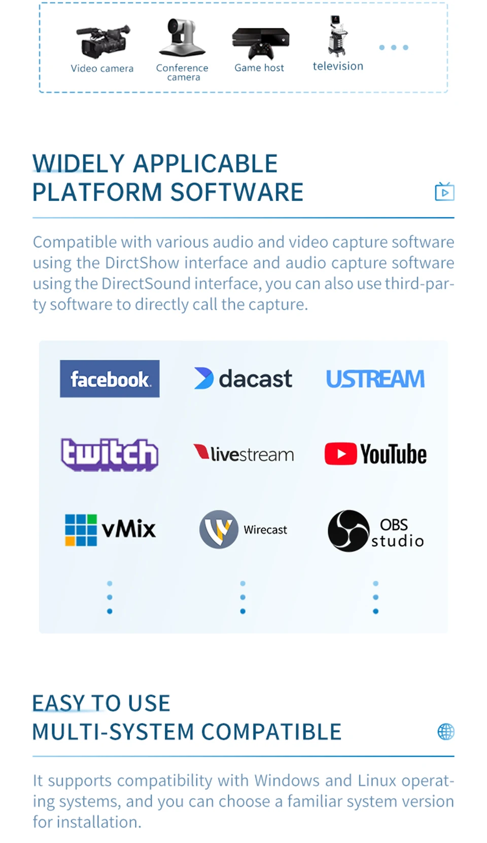 Vmix,Wirecast,OBS,VJ,Xsplit,Windows Media Encoder, ,Adobe Flash Media Live Encoder, Real Producer Plus, VLC, AMCAP etc.