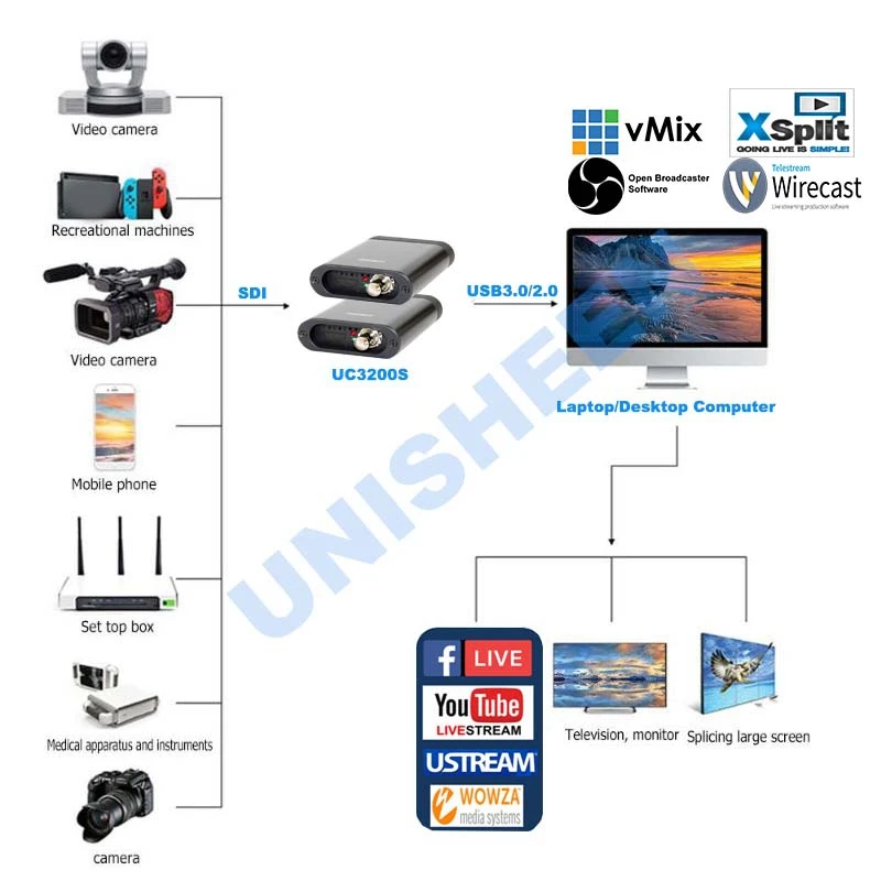 Comprar UNISHEEN gran oferta caja de captura de vídeo fácil UC3200HS FPGA Grabber Dongle juego transmisión en vivo 1080P USB3.0 60FPS SDI HDMI