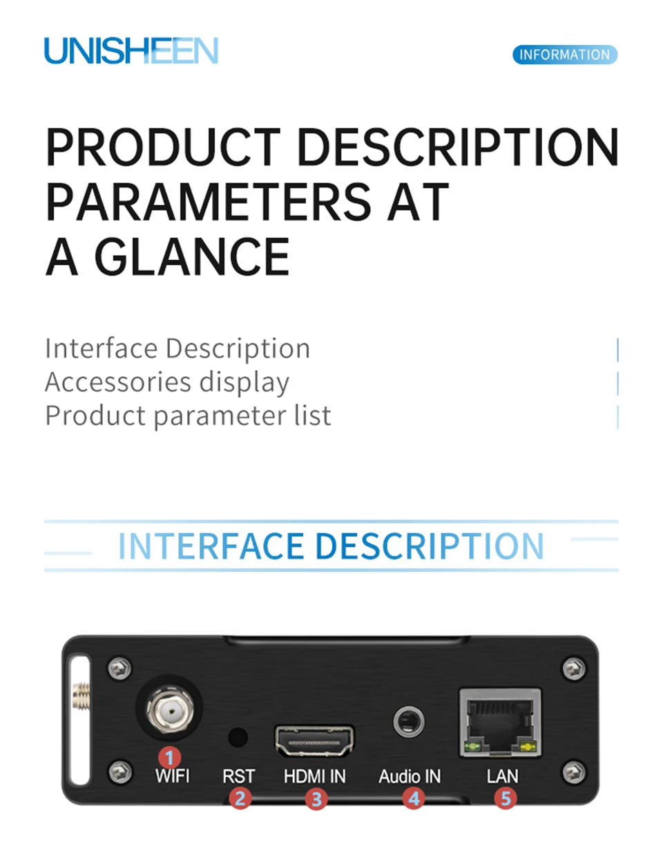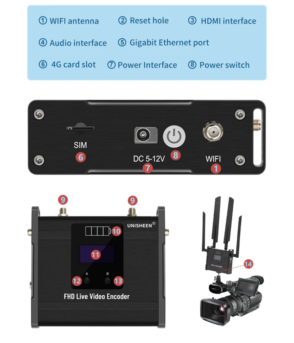 Comprar UNISHEEN H264 H265 WIFI transmisor Ip RTMPS transmisión en vivo inalámbrico RTSP SRT 4G LTE HDMI SDI codificador de vídeo transmisión en vivo