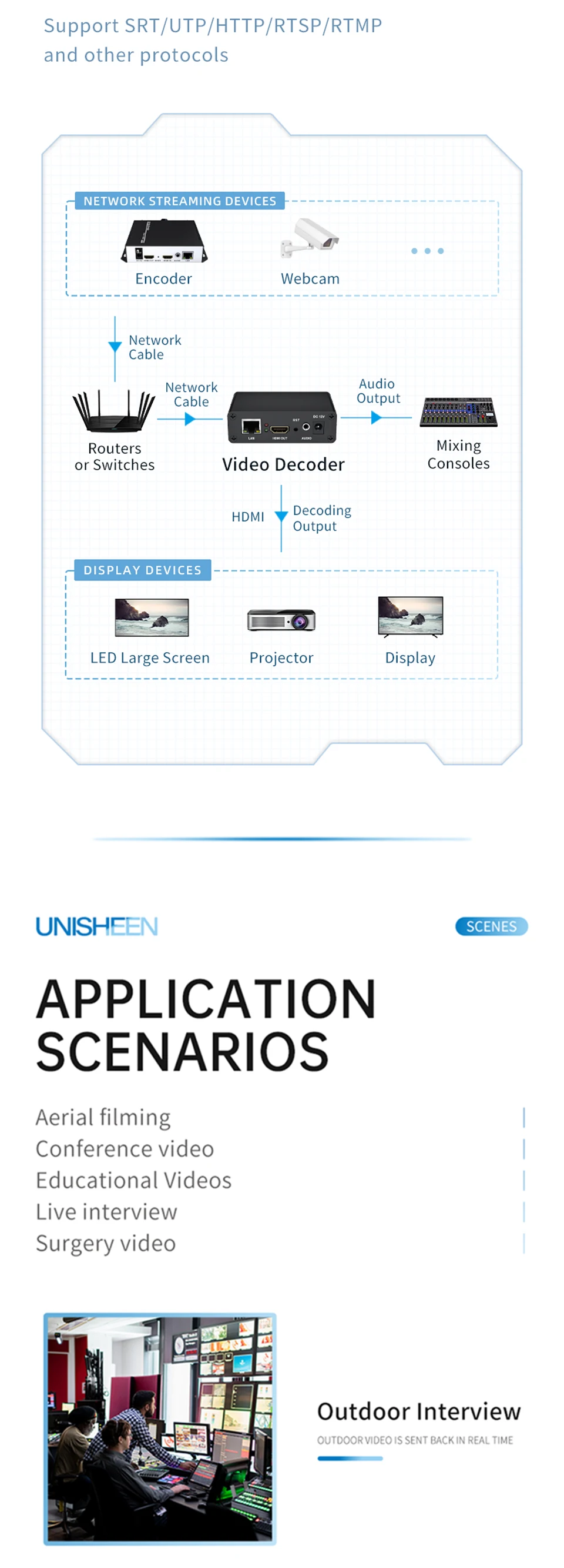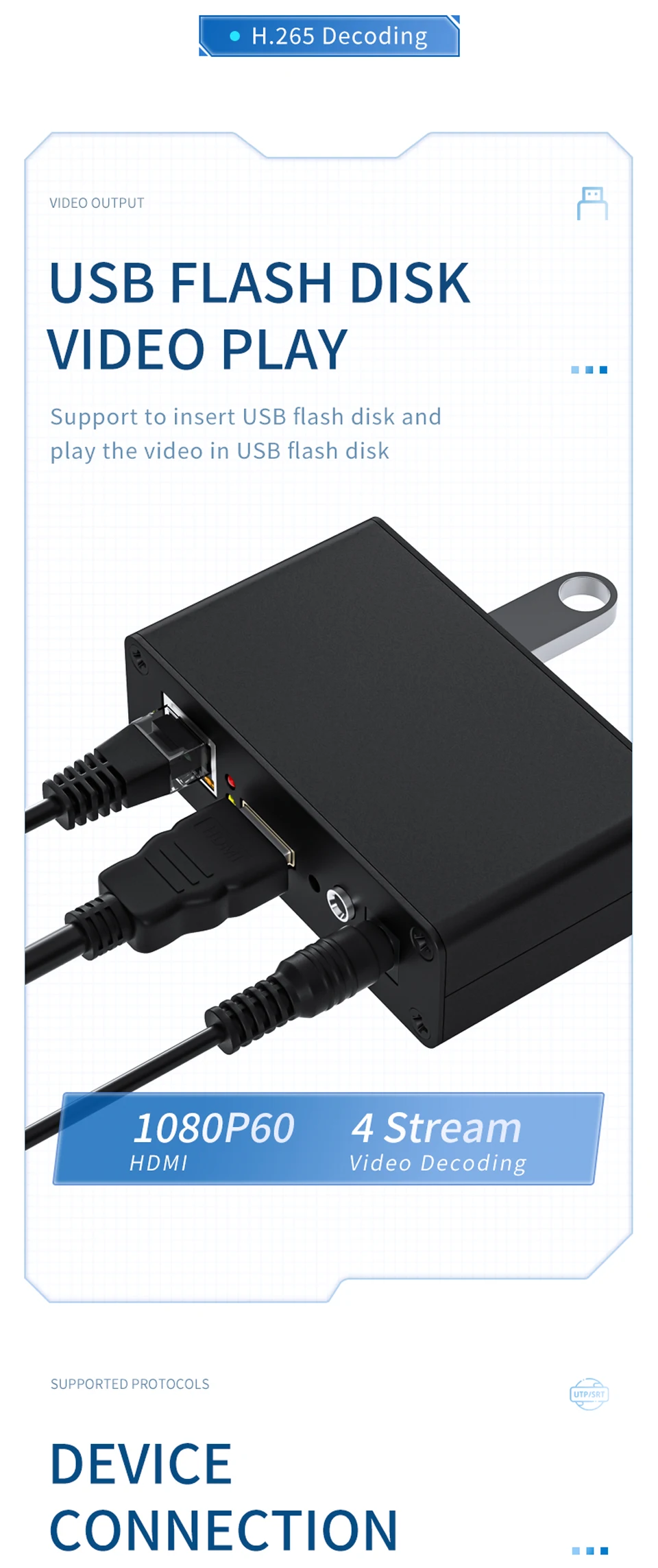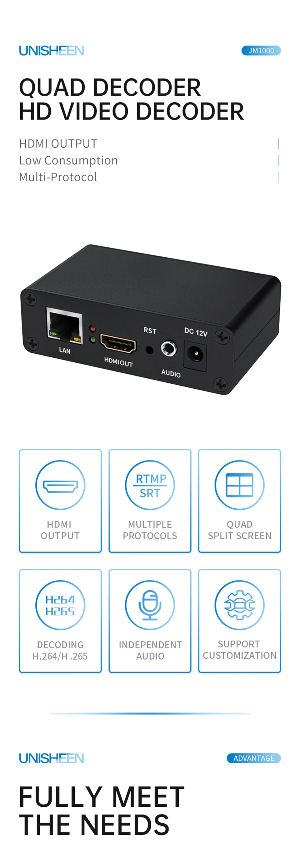 Comprar UNISHEEN-JM1000, reproductor de disco Flash USB H.265, H.264, RTSP, SRT, RTSP, Rtmp, decodificador de vídeo IP a HDMI