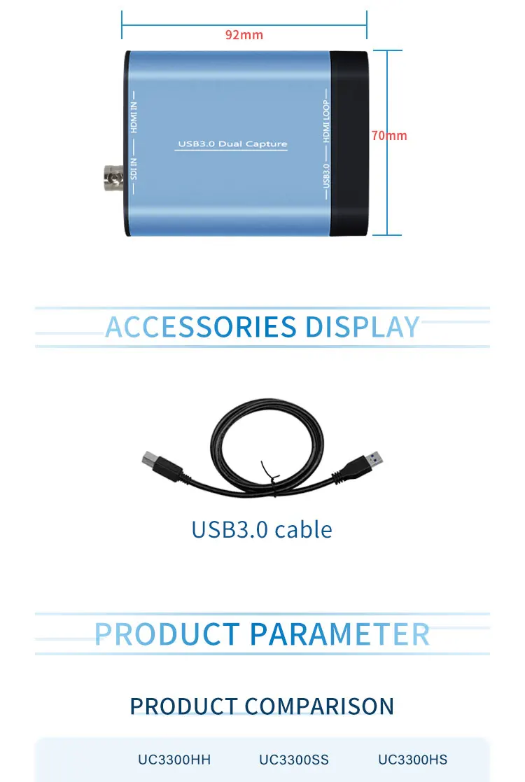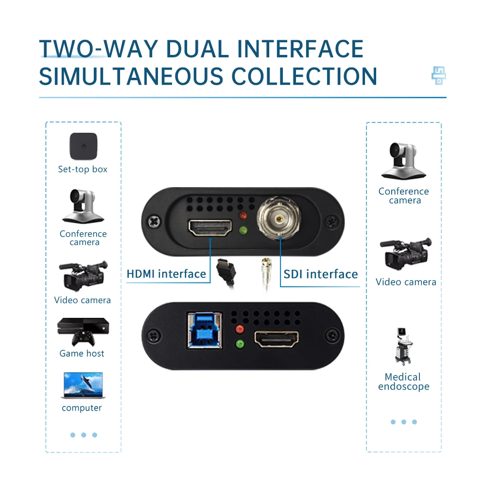 Comprar UNISHEEN SDI Grabber Dongle, equipo de transmisión de juegos con Zoom, transmisión en vivo, OBS, Vmix, USB, HDMI DUAL, dispositivo de captura de vídeo