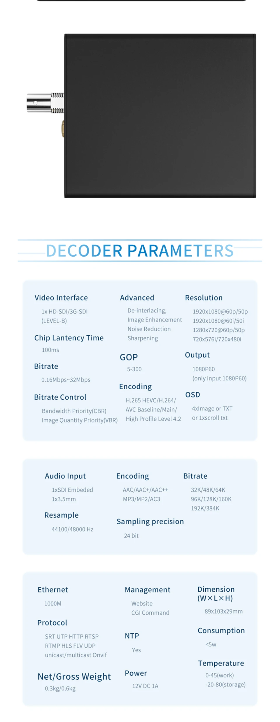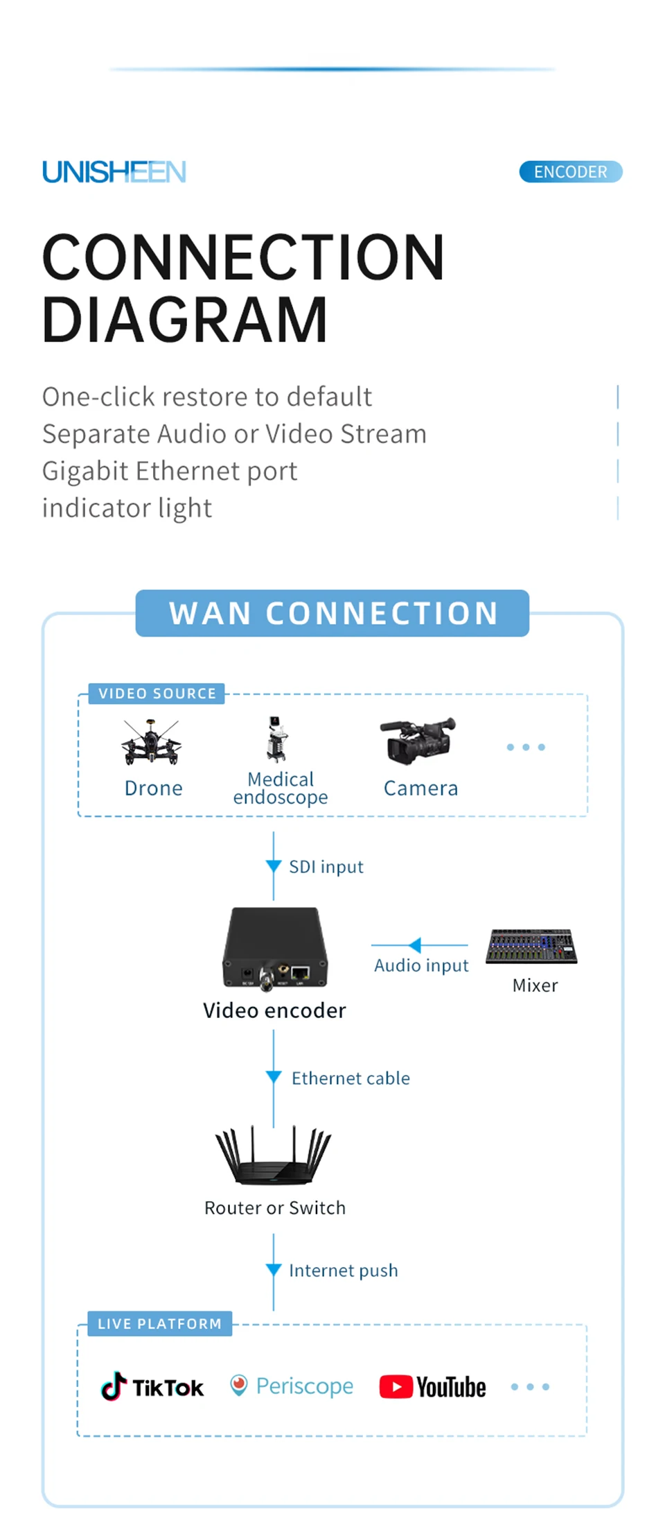 Comprar UNISHEEN Transmisor de baja latencia Youtube Facebook Vmix RTSP RTMP SRT 264 HD 265 3G SDI Video IP Stream Codificador