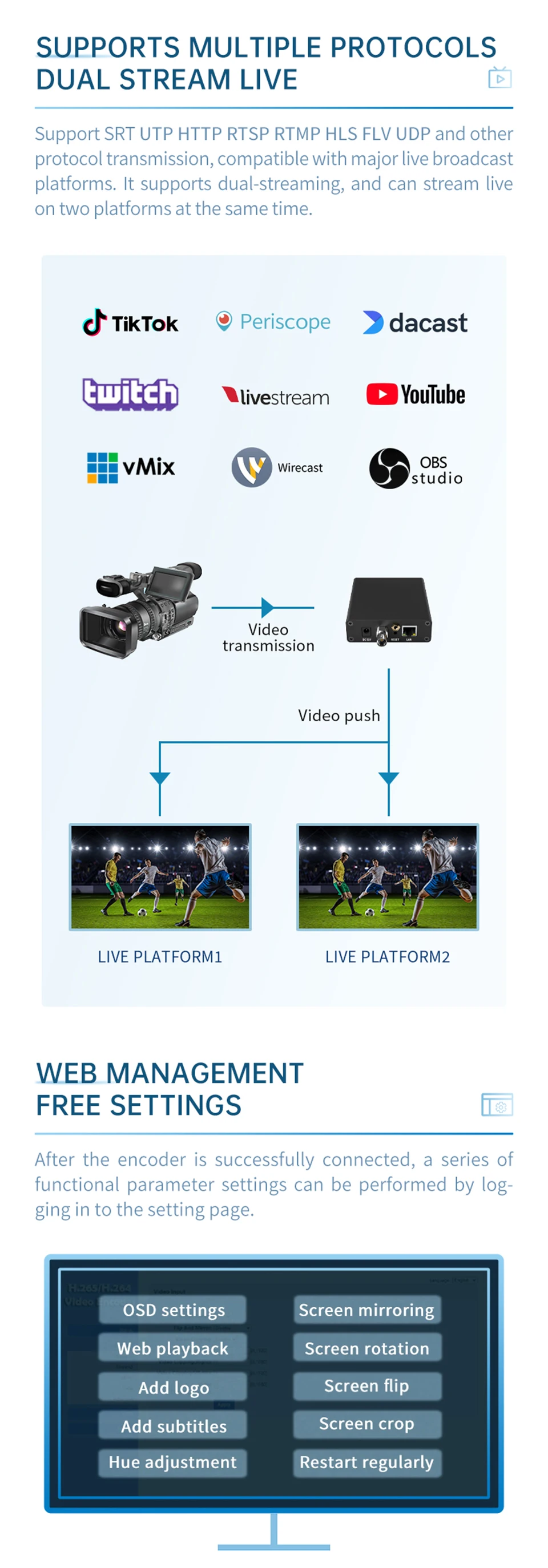SRT UTP HTTP RTSP RTMP HLS FLV UDP unicast/multicast Onvif