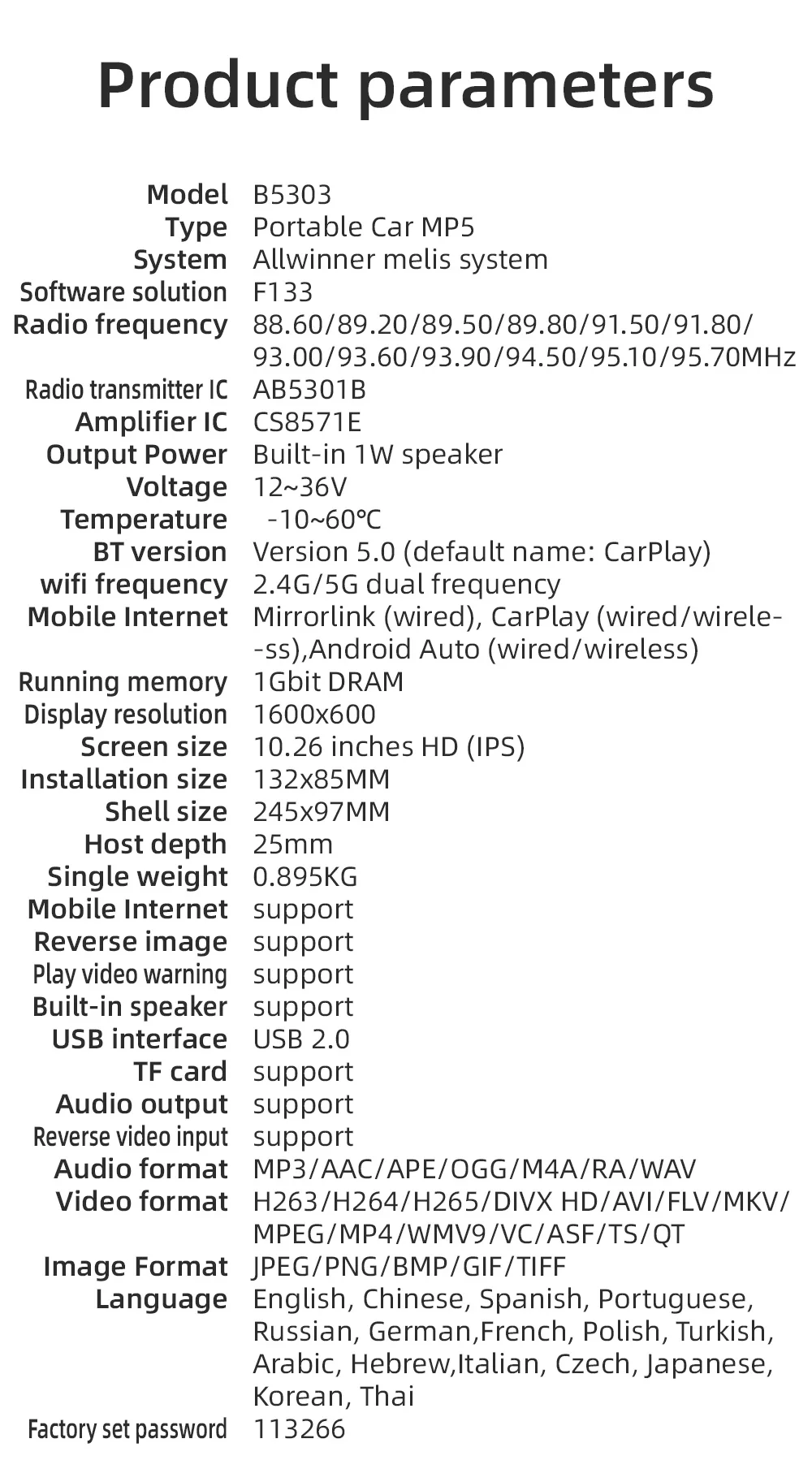 En comparación con el audio del automóvil tradicional 1DIN y 2DIN, el estéreo portátil para automóvil B5303 es más fácil y rápido de instalar. Se faculta a la mecánica del hogar con sus características de nivel profesional, pero la dificultad de nivel de entrada es menor. ¡No necesita contratar los servicios de un técnico en electrónica para ayudarlo con la instalación, ahorrar dinero, esfuerzo y preocupaciones!