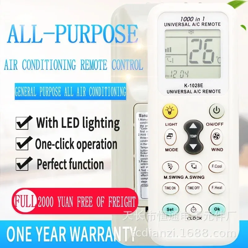 1 * control remoto universal de aire acondicionado (con iluminación y tecla de calentamiento electrónico inferior derecha).