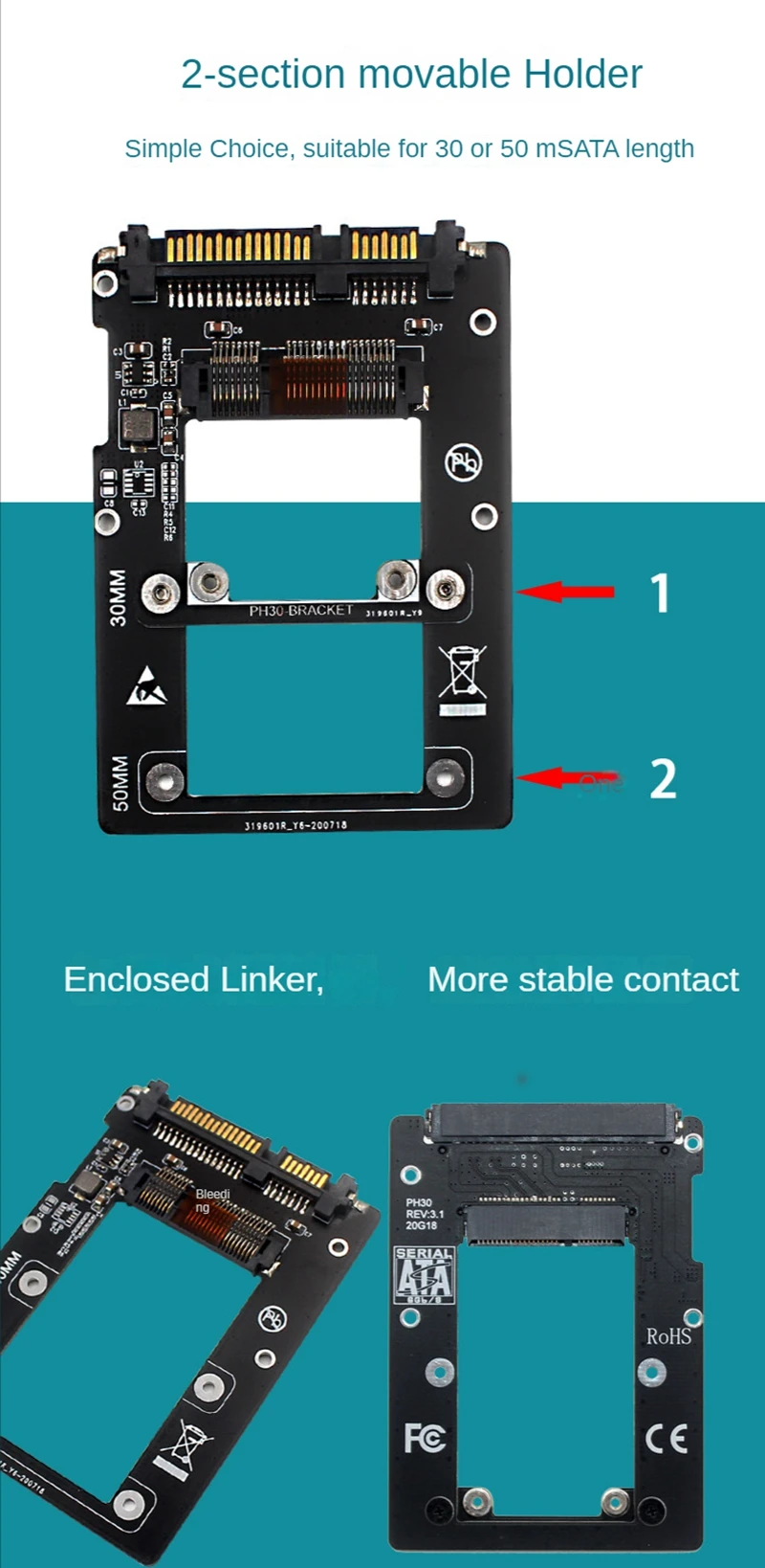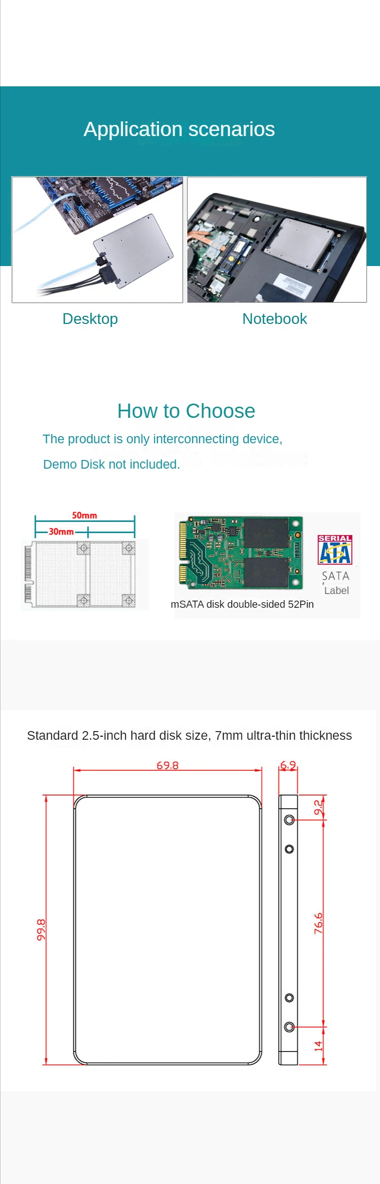 Comprar Universal MSATA a SATA estándar de 2,5 "Mini PCIe SSD mSATA a 2,5 pulgadas SATA tarjeta adaptadora de 22 pines para Windows Linux iOS