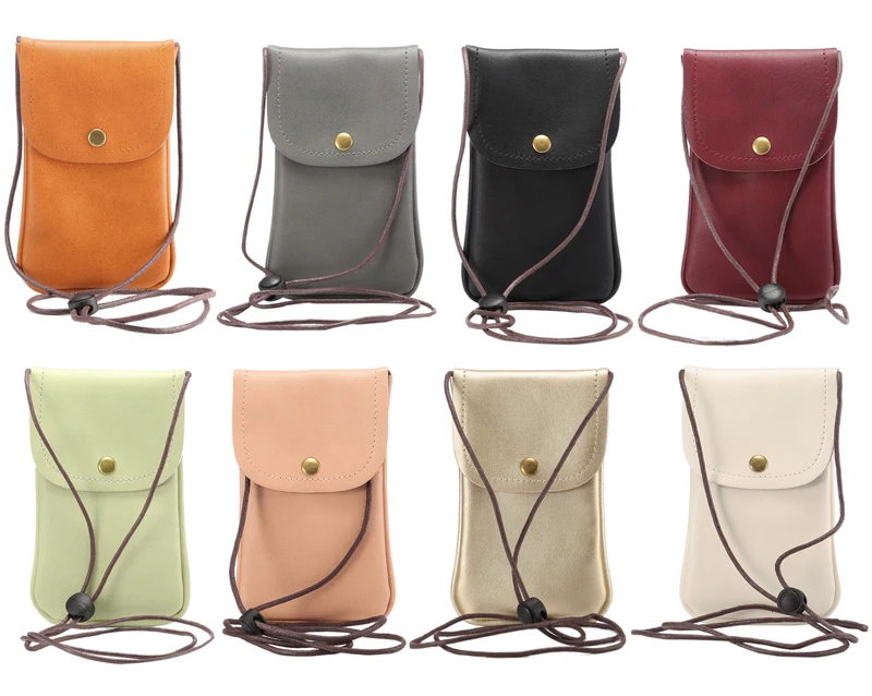 Comprar Universal PU cuero teléfono celular hombro bolsillo cartera bolsa funda con correa para el cuello para Samsung para IPhone 11 12 13 Pro bolsa de teléfono