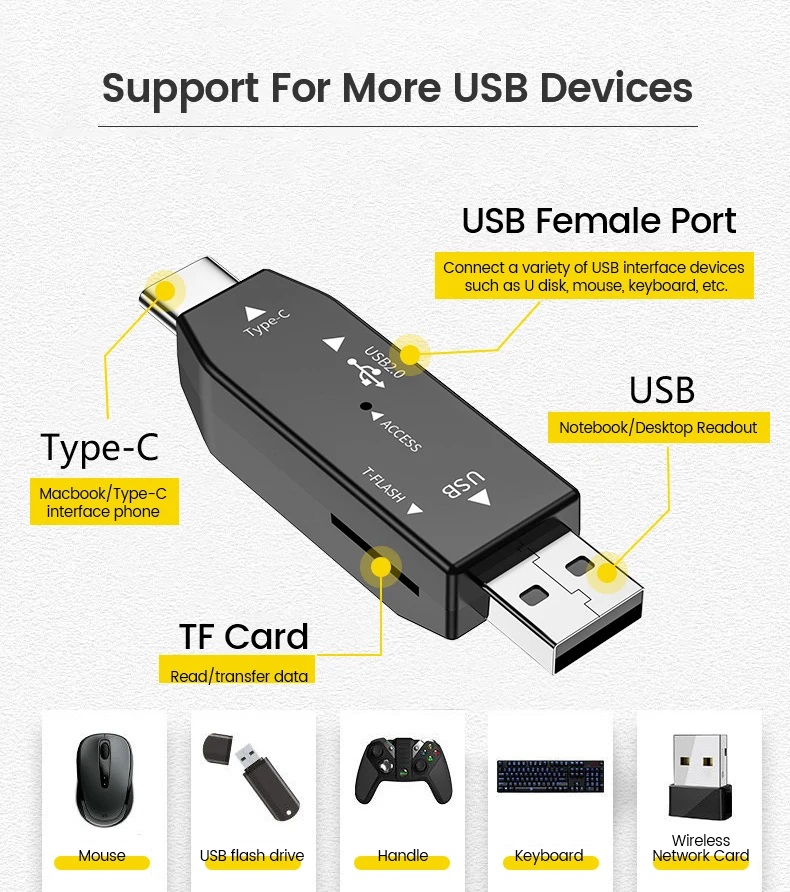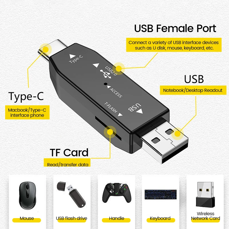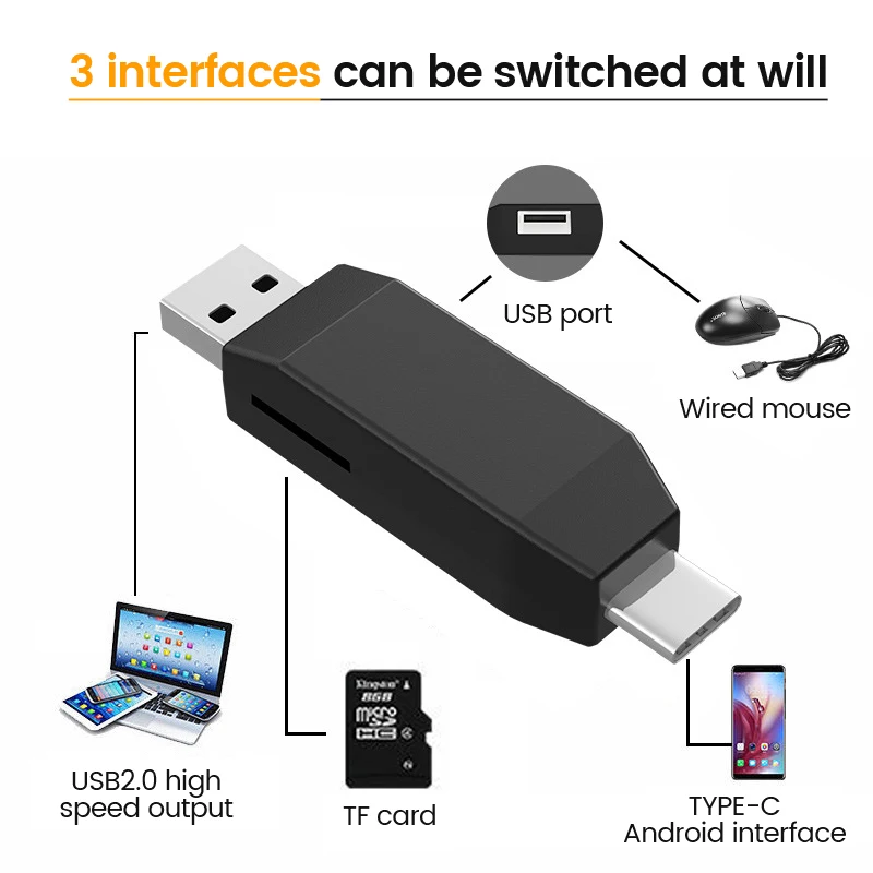 Comprar Universal tipo C/USB 2 en 1 USB 2,0 OTG TF SD lector de tarjetas USB HUB adaptador de tarjeta Flash rápida unidad Flash adaptador de tarjeta de memoria inteligente