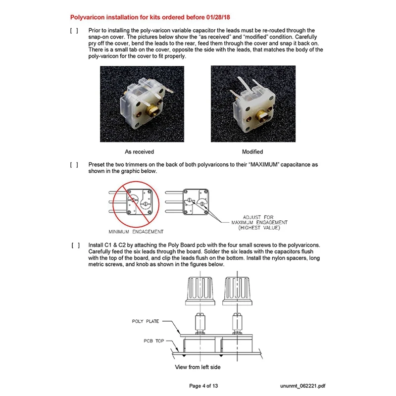 Proporcionamos todo el hardware cautivo de acero inoxidable para las conexiones de antena y contrapeso. Hay un BNC hembra montado en placa para la conexión a su equipo. En una escala de dificultad de 1 a 5, siendo 5 el más difícil, esto se clasifica en 2 o 3 dependiendo de su experiencia.
