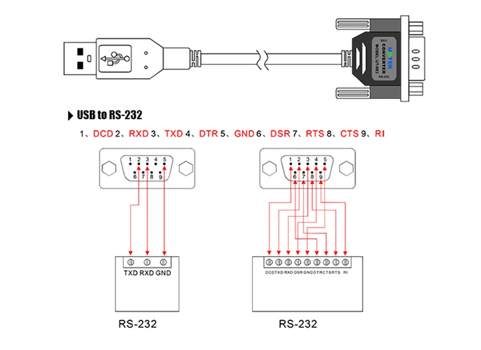 Los dispositivos o equipos todavía utilizan la interfaz RS-232.En esta situación, necesitamos utilizar un convertidor USB a RS-232 para completar los datos.