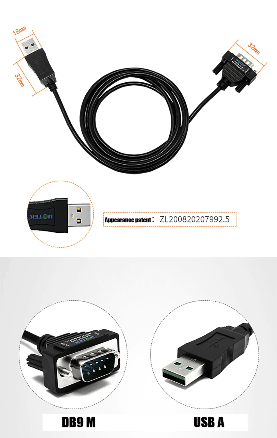 UOTEK 1.5M convertidor USB a RS-232 Cable de conversión RS232 USB2.0 serie adaptador COM de 9 pines línea conector DB9 UT-883