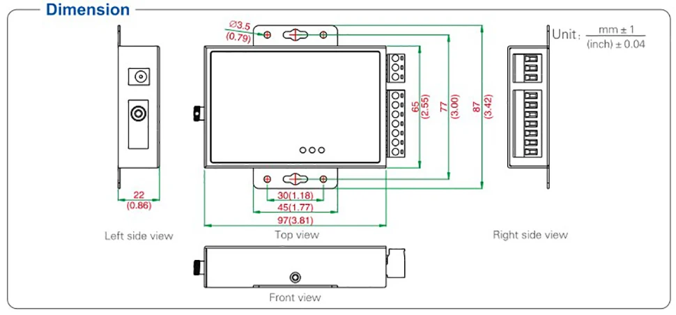 UT-2577SM admite transmisión de datos de dos señales: transmite y recibe datos. Al mismo tiempo, es con RS-485/422 transmisión de datos Circuito de control automático; Conversión de retardo cero; Todos los puertos serie están conectados a través del bloque de terminales.