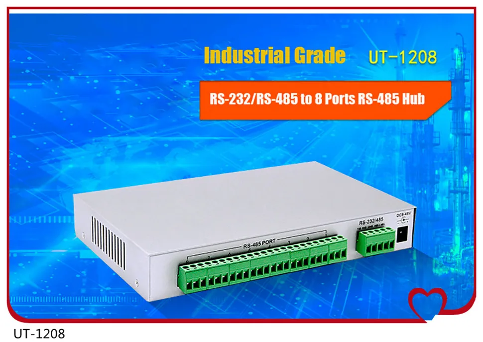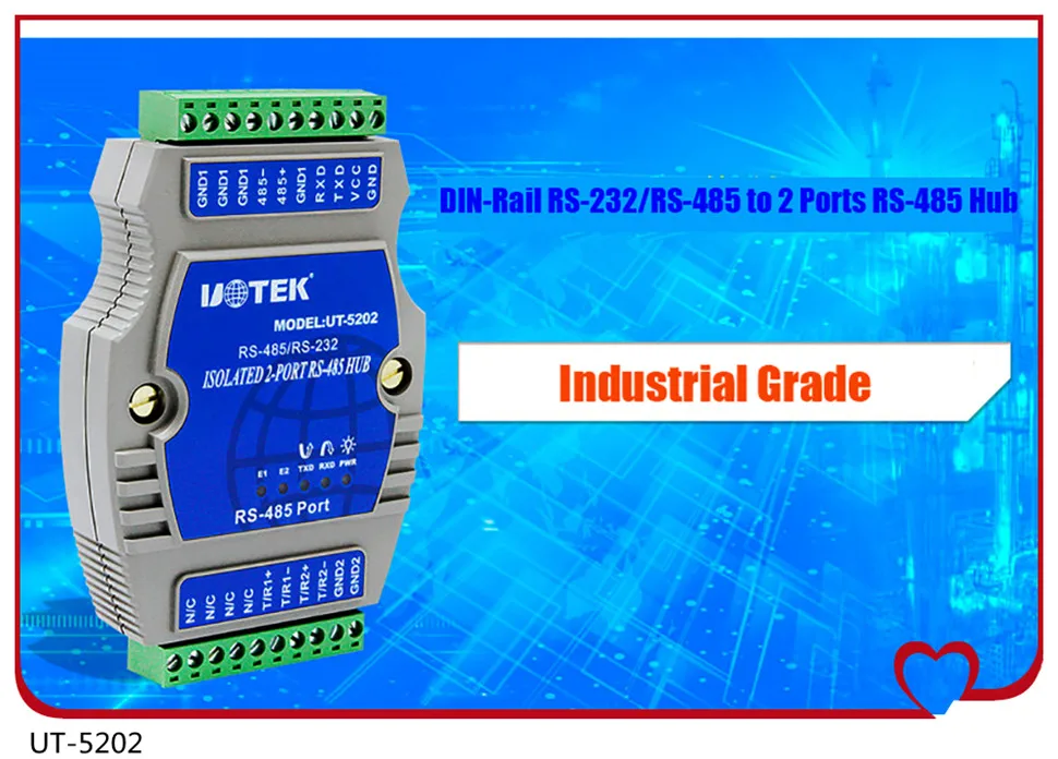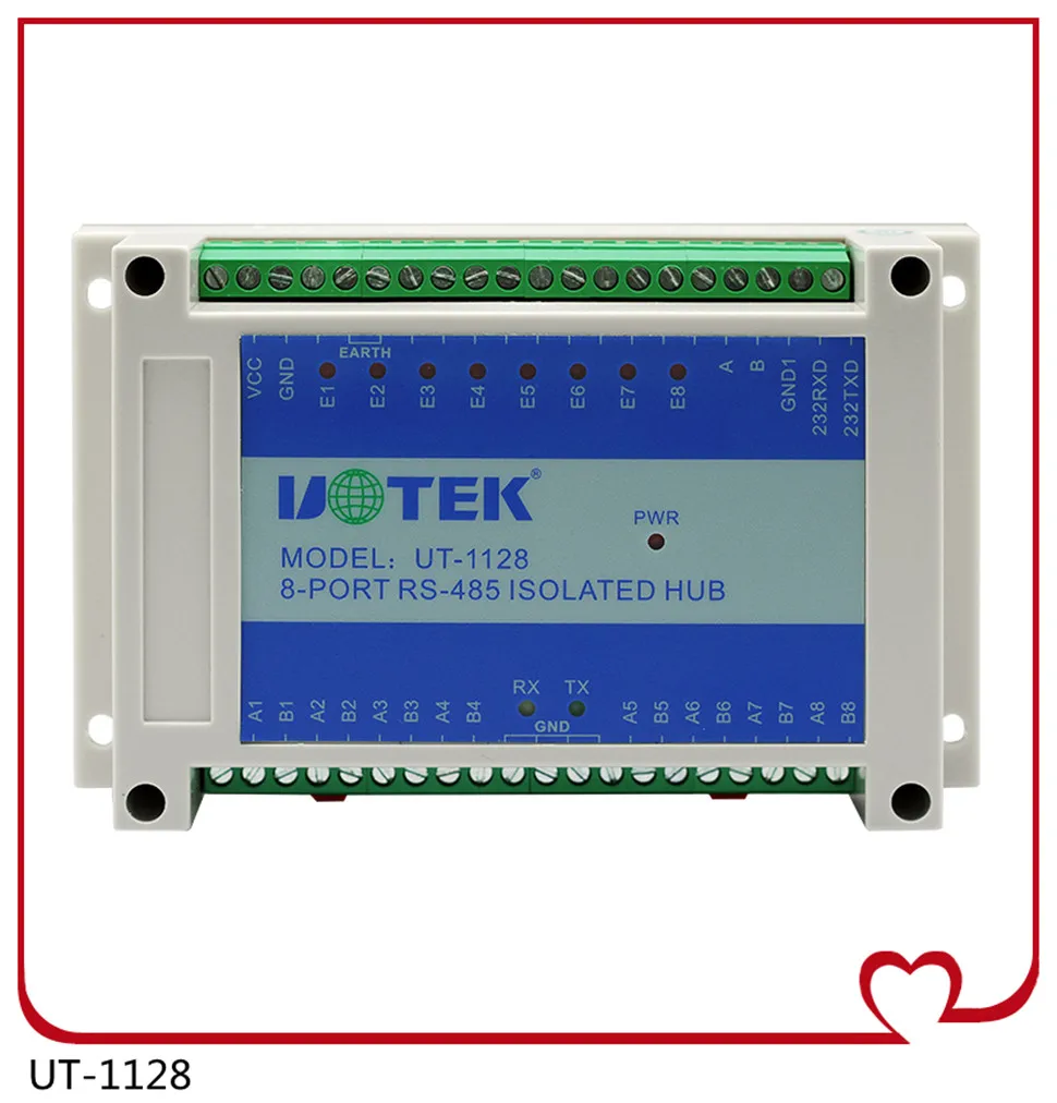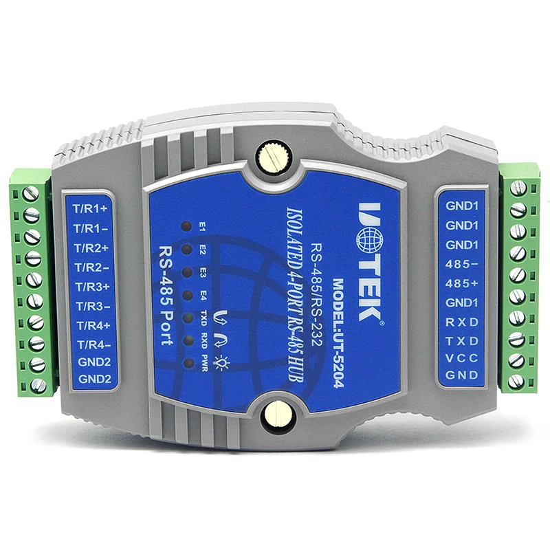 Utilizado en sistemas de peaje de carreteras, sistemas de monitoreo de carreteras y sistemas de energía. UT-5204 HUB DE RS-485 admite conexión de BUS star RS-485. Cada puerto admite cortocircuito, protección de circuito abierto, aislamiento optoelectrónico de 2.500 V. El usuario puede cambiar fácilmente la estructura del BUS de RS-485,