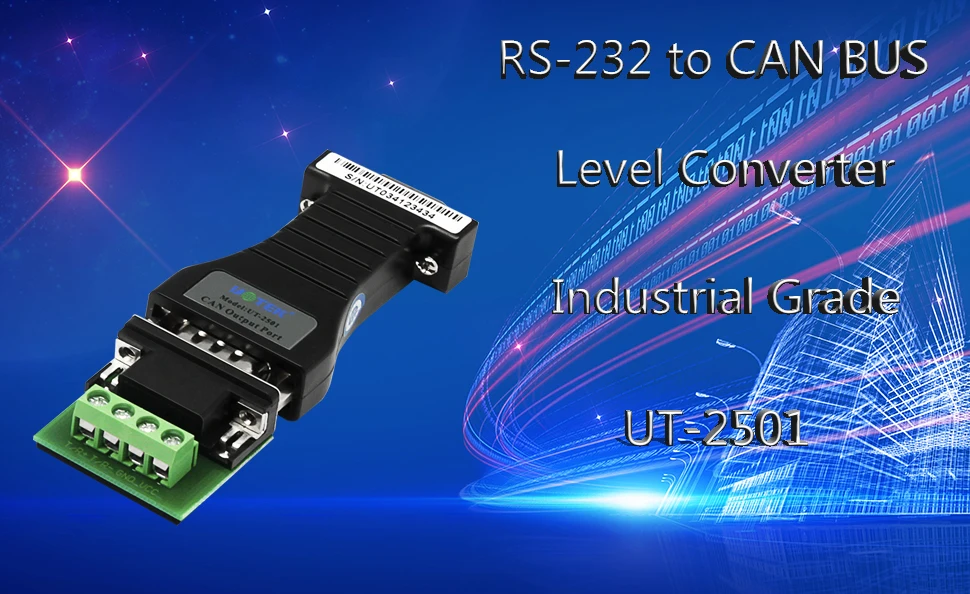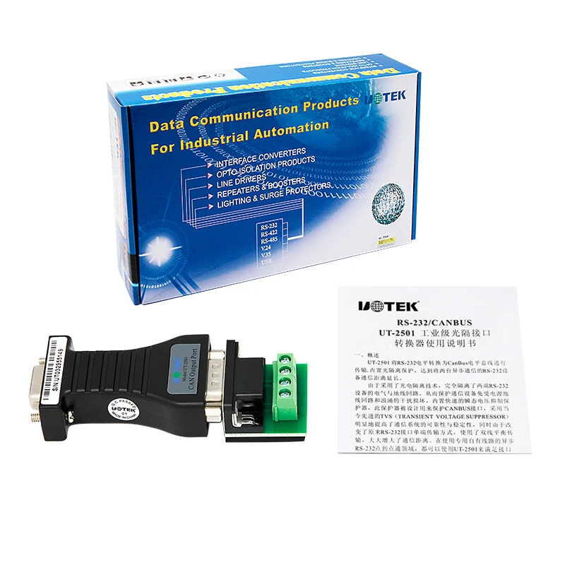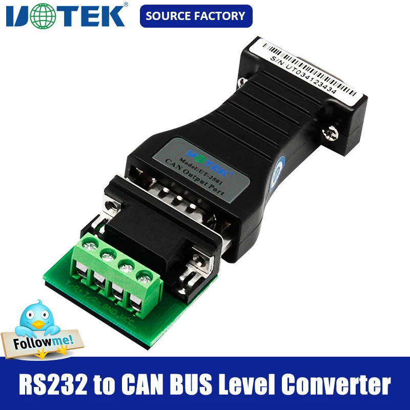 UOTEK-Convertidor de nivel industrial, adaptador Canbus RS232, Conector de nivel, de tipo CAN BUS, de grado industrial, con conector de UT-2501