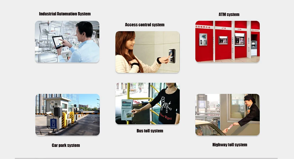 Sistema, sistema de estacionamiento, sistema de cajero automático, sistema de carga de autobuses, sistema de venta de boletos de cantina, sistema de asistencia y sistema de estación de peaje, etc.
