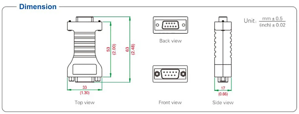 ● Dimensiones: 63 × 33 × 17mm