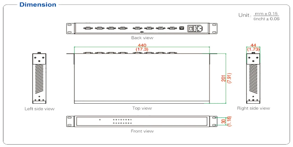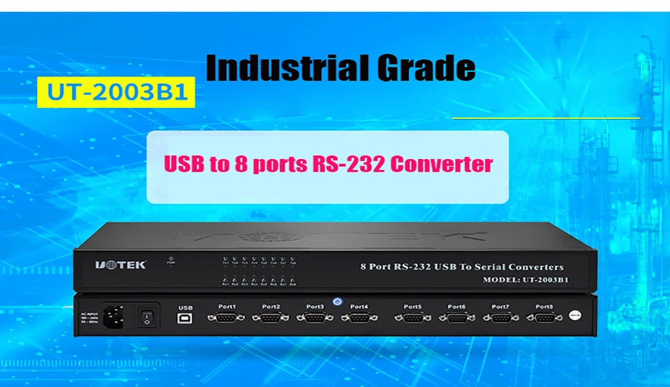 UOTEK Convertidor USB a RS-232 USB2.0 Adaptador de conversión RS232 de 8 puertos 1U ESD UT-2003B1