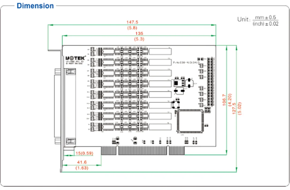 UT-768i puede funcionar en bus PCI de 3,3 V y 5 V, lo que permite instalar la tarjeta multiserial en cualquier PC o servidor disponible.