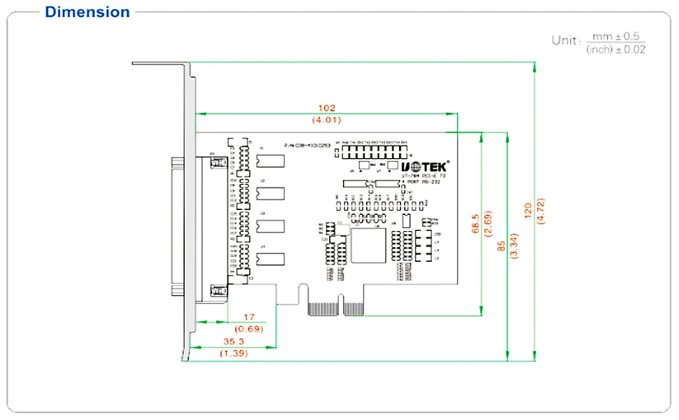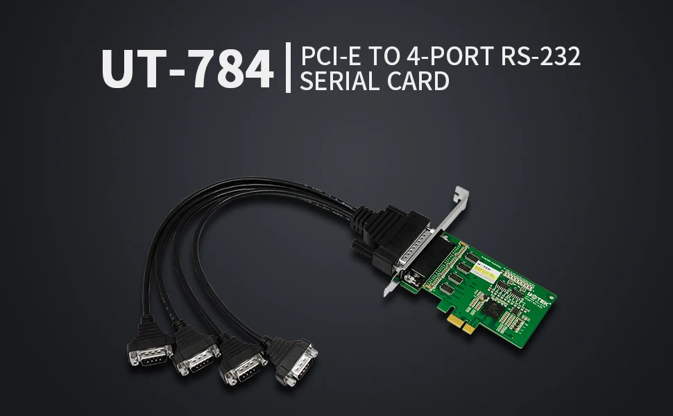 UOTEK Tarjeta serie PCI-E a RS-232 de grado industrial PCIE a RS232 4 puertos convertidor DR44 de alta velocidad DB9 Com conector adaptador UT-784
