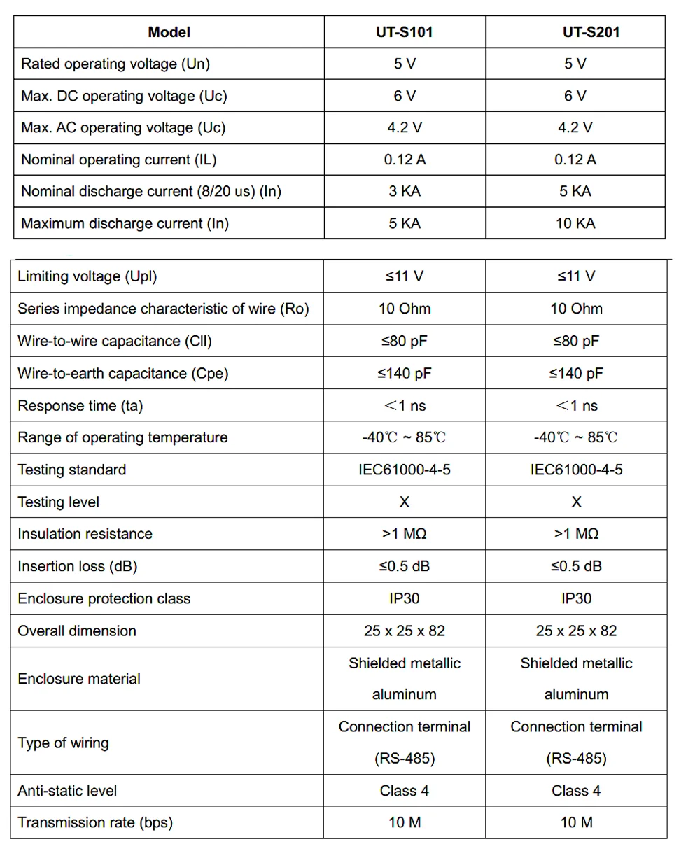 UOTEK-Pararrayos de grado industrial, módulo de aislamiento RS485, protector contra sobretensiones, ESD Level4, IP30, 5KA, de nivel 1, 2, 1, 2, 2