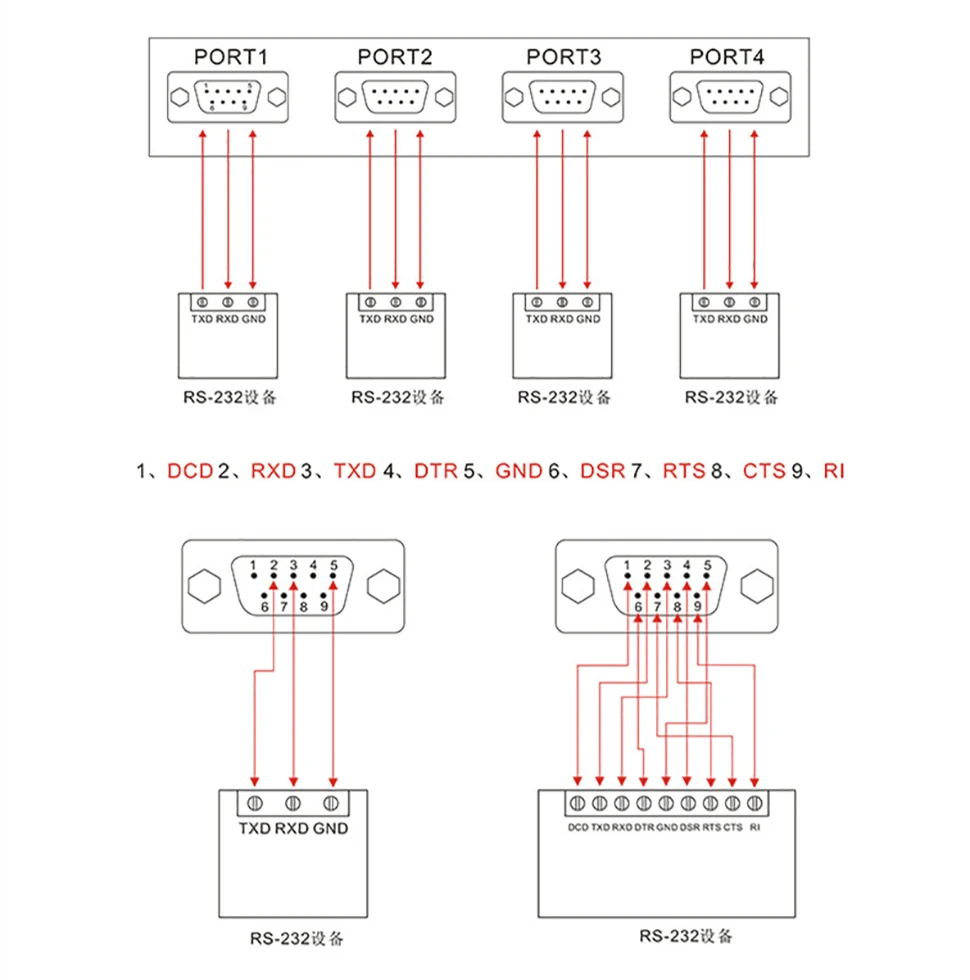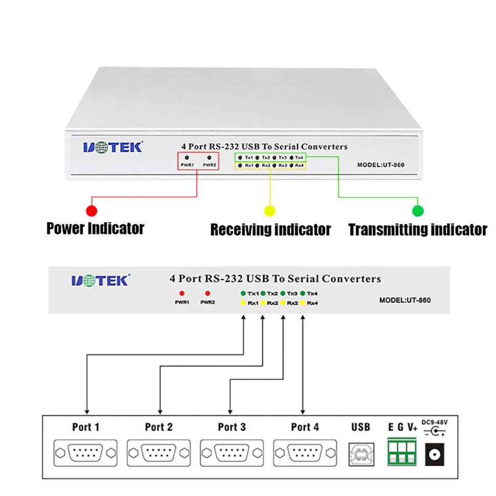 UOTEK convertidor USB a RS-232 4 puertos adaptador de conversión RS232 USB2.0 serie 9 pines COM DB9 conector ESD UT-860
