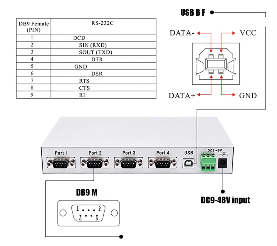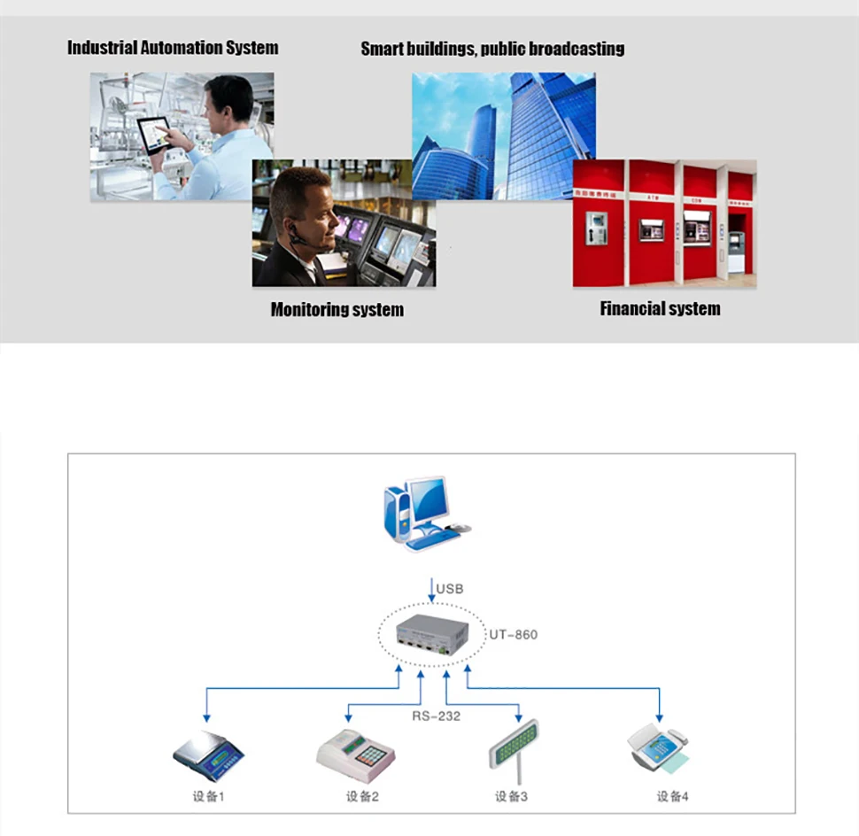 UT-860 es un convertidor USB/RS-232 universal alimentado por puerto; No necesita alimentación externa.Cumple con los estándares USB y RS-232; Convierte la señal USB de un solo lado en señal UART RS-232.El puerto RS-232 adopta DB9 macho como conector.Este convertidor tiene conversión automática de recepción y transmisión de retardo cero incorporada y un circuito de E/S único que controla automáticamente la dirección del flujo de datos, plug & play.Es compatible con el software y hardware de comunicación actual.