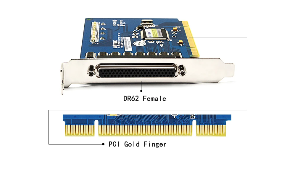 ●Tipo de conexión de interfaz de Hardware: 1 DR62 hembra; BUS: PCI Universal de 32 bits