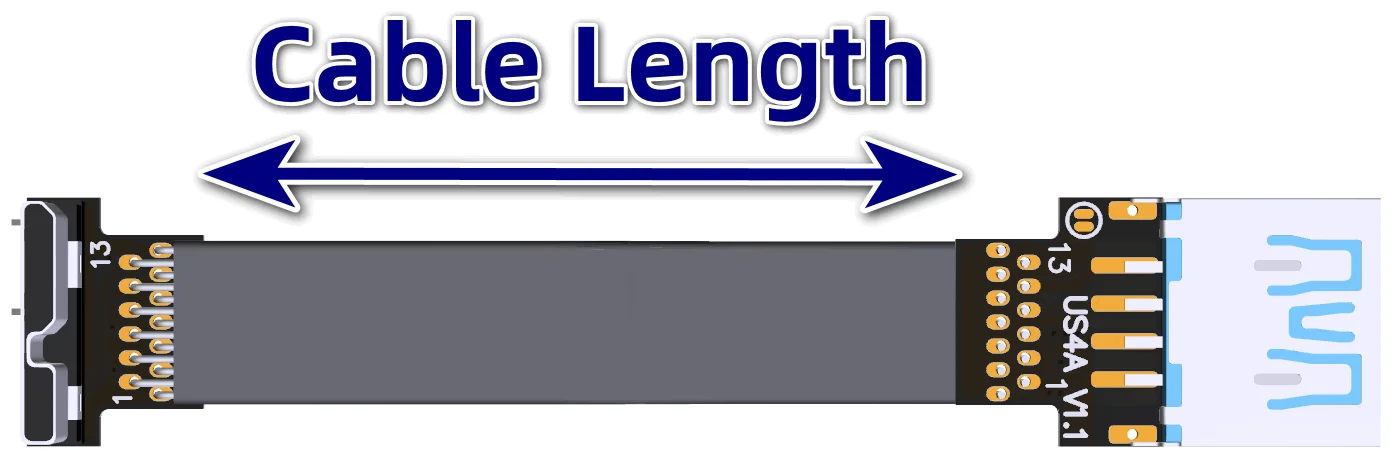 La longitud del cable se refiere a la parte del cable visible.No incluye la PCB ni el conector.Para conocer la longitud del cable, consulte la flecha azul de 5 cm en la siguiente figura.