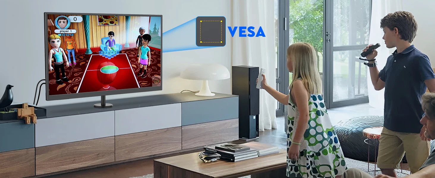 Esta pantalla externa cuenta con un 180° Soporte giratorio, le permite configurar el monitor en el ángulo perfecto para mayor comodidad durante el uso.La compatibilidad con VESA (M4*6mm) le permite montar el monitor fácilmente en paredes o brazos ajustables para mayor flexibilidad.