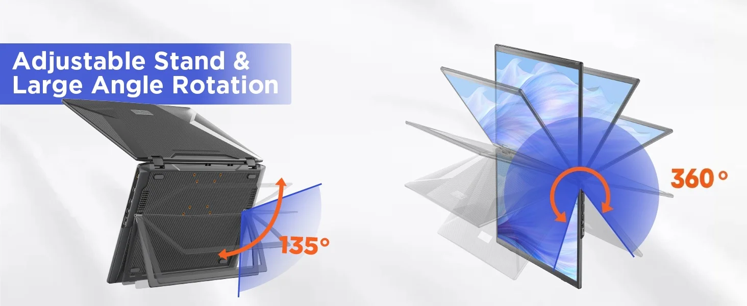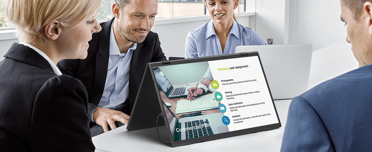 180° El sistema de detección de gravedad mejora el uso compartido de materiales de conferencias, mientras que la rotación de la pantalla garantiza una visibilidad clara para todos los participantes.