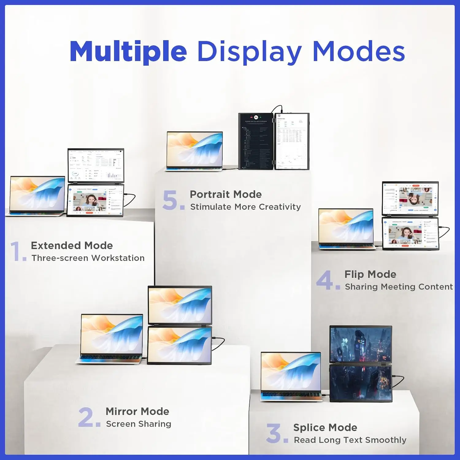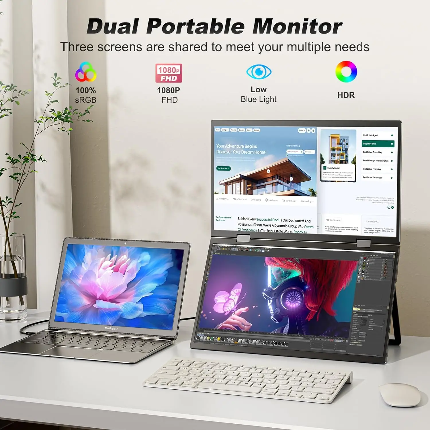 Comprar Uperfect Delta 15.6 pulgadas ordenador portátil extensor de pantalla de doble pantalla Monitor portátil 1080p HDR 360 ° plegado apilado tres pantallas, con soporte de consola móvil para ordenador portátil