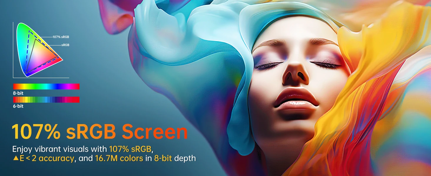 Gama de colores 100% sRGB, la precisión del color en Deta 2, proporcionando imágenes de alta calidad y colores reales vivos.