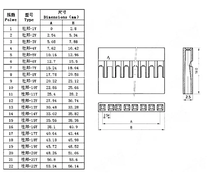 Comprar Upont-carcasa de conector macho y hembra, 2, 3, 4, 5, 6, 7, 8, 9, 10, 12P, Pin de una sola fila, Terminal de 2,54mm, carcasa de agujero pasante