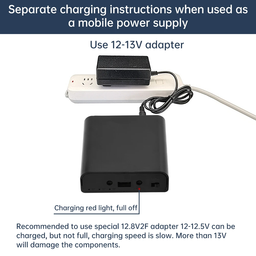 Voltaje de entrada de UPS: se carga dentro del rango de 12-13 V; no debe exceder los 13 V.Por debajo de 12,6 V no logrará una carga completa.Recomendado 12,7 V.
