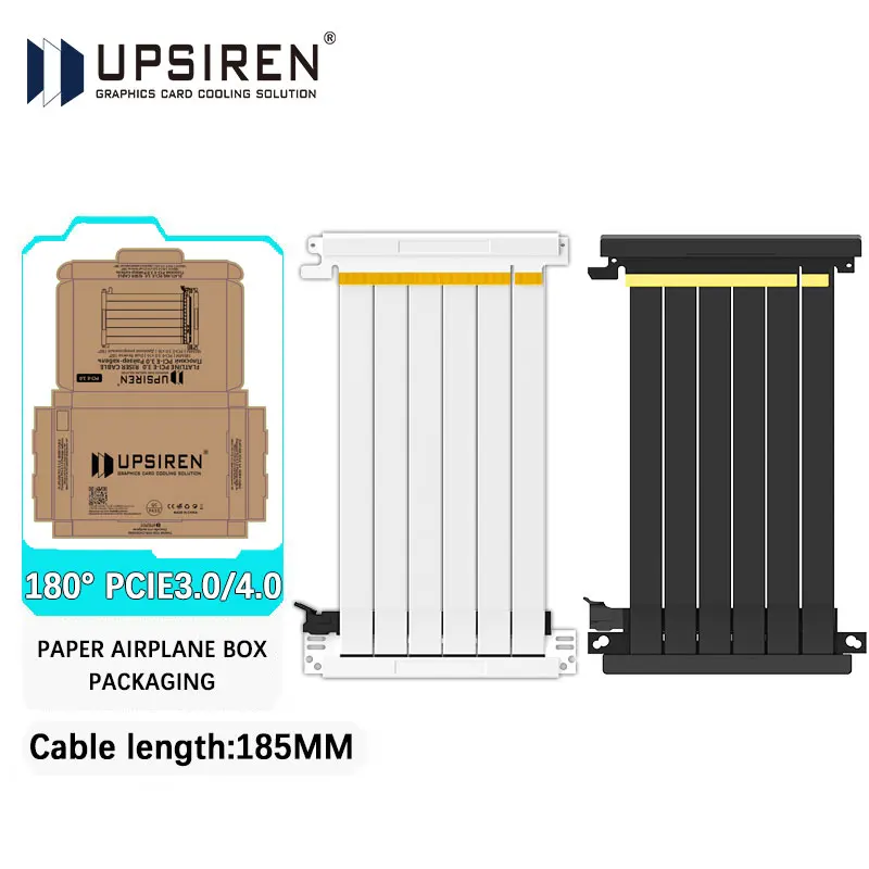 UPSIREN 180 ° Cable de extensión PCI-E 3,0/4,0 X16 GPU Cable elevador de montaje Flexible blindado Cable de extensión de tarjeta de vídeo longitud 185MM