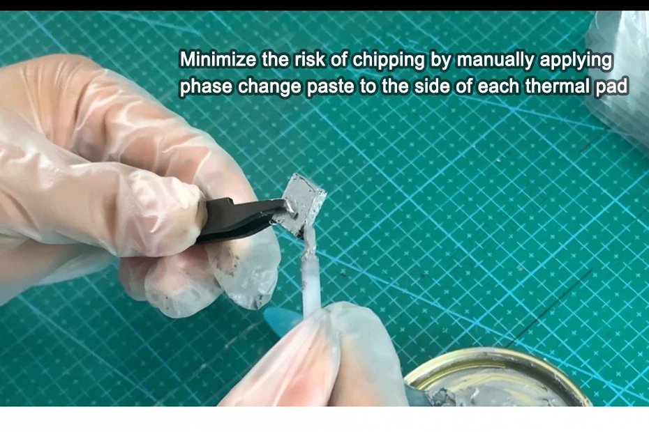 Las especificaciones del producto son 12*14mm después del corte, que es el mismo tamaño que la memoria de vídeo GDDR6X. Se puede colocar directamente en la memoria de vídeo y la operación es simple.