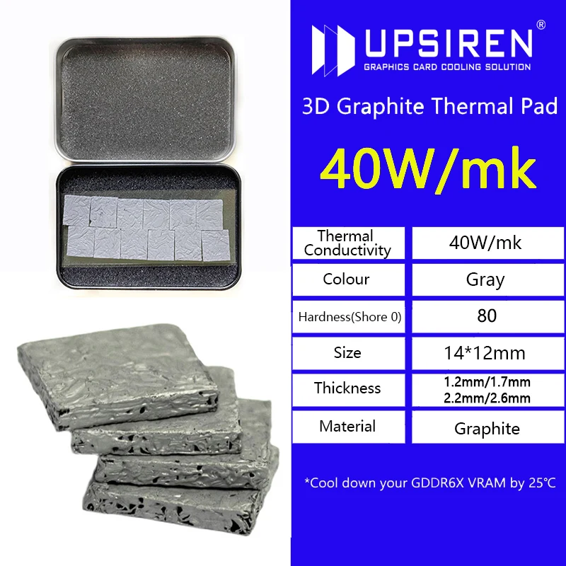 Comprar UPSIREN Almohadilla Térmica de Grafito, Refrigeración de Grafeno, Almohadilla de Engrase, 40 W/m.k, 3D, Memoria de 3090 o 3080, Circuito Integrado, GDDR, 6X, VRAM