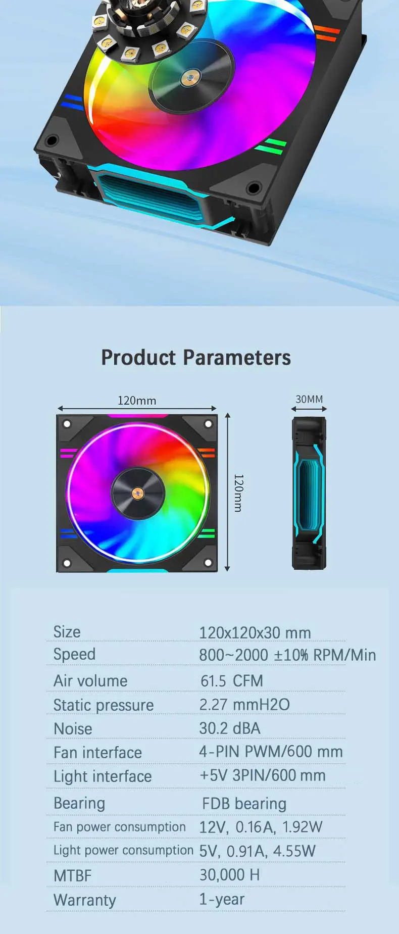 El ventilador está conectado mediante un clip y aún necesita ser alimentado por cables: fuente de alimentación de iluminación de 5V 3PIN, fuente de alimentación PWM de 4 pines. Admite conexión en serie de ventiladores y sincronización de efectos de iluminación.