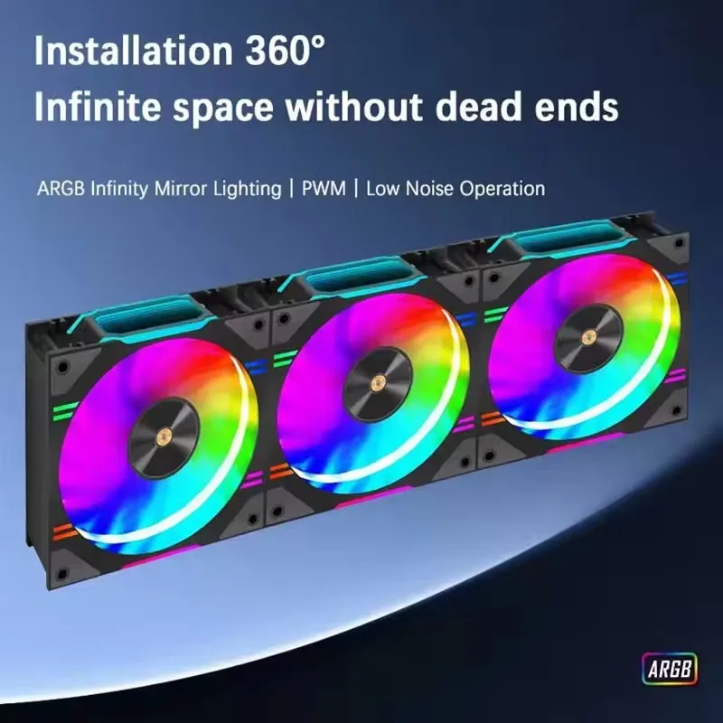 El ventilador está conectado mediante un clip y aún necesita ser alimentado por cables: fuente de alimentación de iluminación de 5V 3PIN, fuente de alimentación PWM de 4 pines.Admite conexión en serie de ventiladores y sincronización de efectos de iluminación.