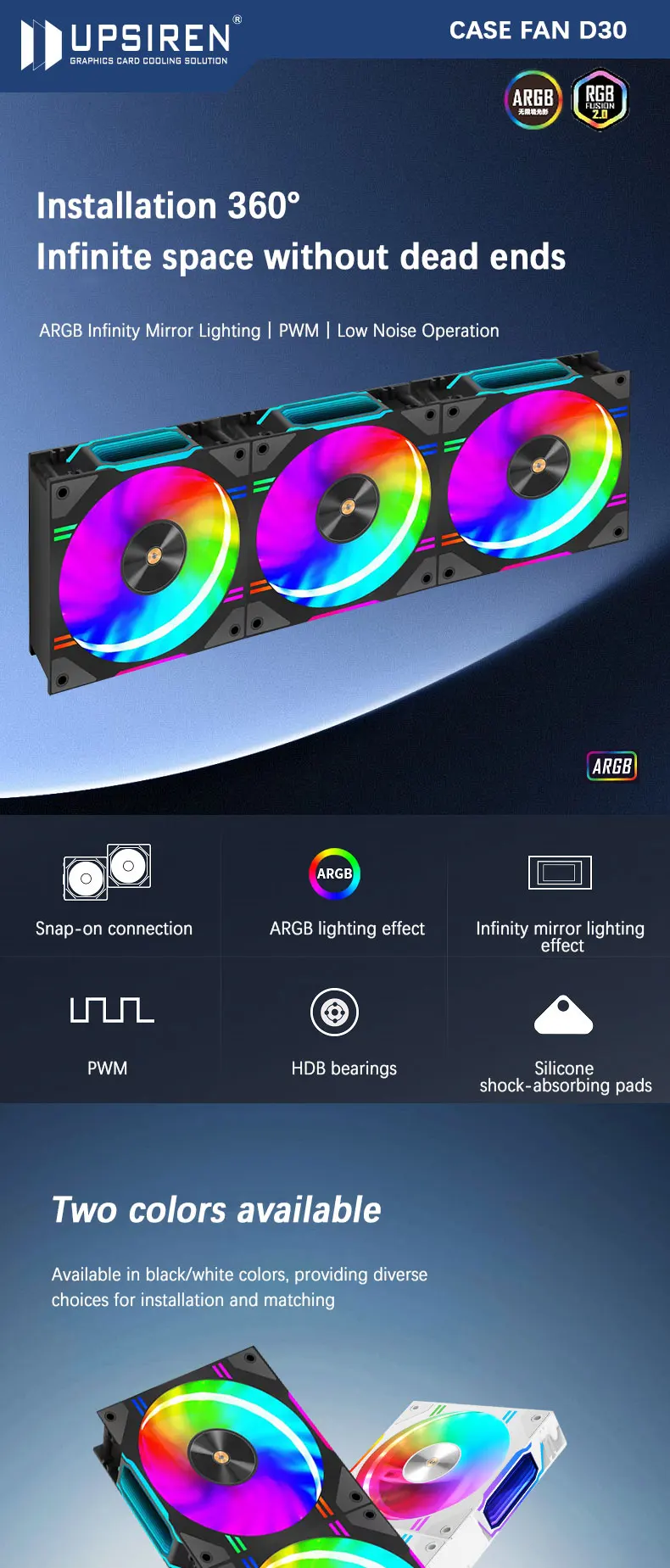UPSIREN D30 ventilador de PC ARGB 120X120X30mm PWM 4PIN 12V radiador de gran volumen de aire ventilador con cubierta de ordenador accesorios para juegos ventilador